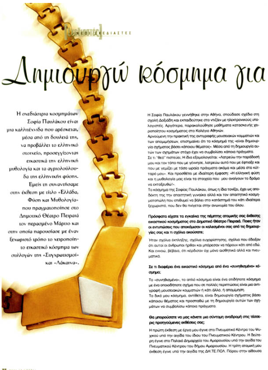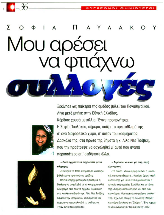 Δημοσιεύσεις σε Μ.Μ.Ε για τη Σοφία Παυλάκου.